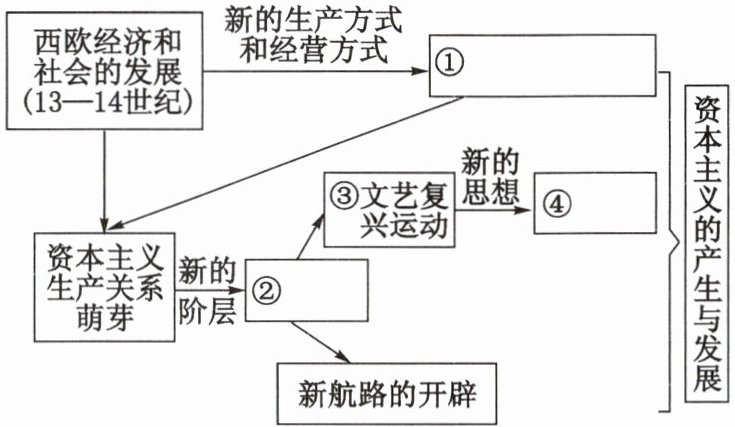联系:随着租地农场和手工工场的出现,产生了新的社会阶层,即富裕农民和城市居民,早期资产阶级逐渐形成;他们不满罗马教廷对精神世界的控制,在意识形态领域掀起了以人文主义为核心的文艺复兴运动。