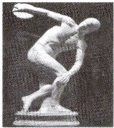 1. 右图是古希腊雕塑典范《掷铁饼者》,该雕塑刻画了一个掷铁饼者的形象,他张开的双臂像拉满的弓,紧贴地面的右腿如同一个轴心,使曲折的身体保持稳定。这个作品体现出了( )