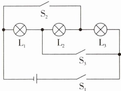 会发光,再闭合 $ S_3 $,能发光的灯是L₁、L₂、L₃