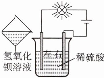 (前两空均选填“左”或“右”)。当向盛有稀硫酸的烧杯中逐渐加入氢氧化钡溶液时,溶液中离子结合产生白色沉淀。此时小灯泡会变暗