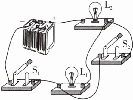 联的,开关 $ S_1 $ 控制灯 $ L_1 $,$ S_2 $ 控制灯L₁、L₂