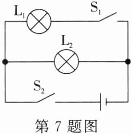 7. 如图所示的电路中,灯 $ L_1 $、$ L_2 $ 是