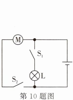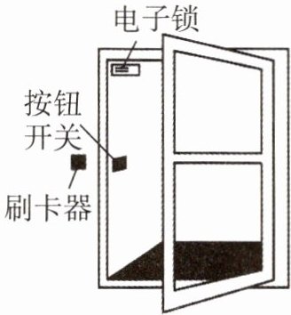 9. 情境应用 某小区的门禁电路主要由门外的刷卡器、门内的按钮开关和电子锁组成(如图所示),无论是刷卡还是按动按钮开关,均可单独控制电子锁中电流的通断。若将电子锁看作用电器,则刷卡器相当于电路中的