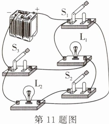 11. 如图所示的电路中,若要使 $ L_1 $、$ L_2 $ 并联,则应该(