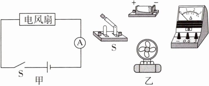 7. 工程实践 如图甲是把电池、玩具电风扇和电流表连接起来的电路图。请在图乙中用笔画线表示导线,连接相应的电路。