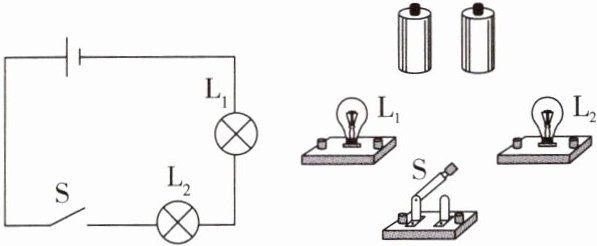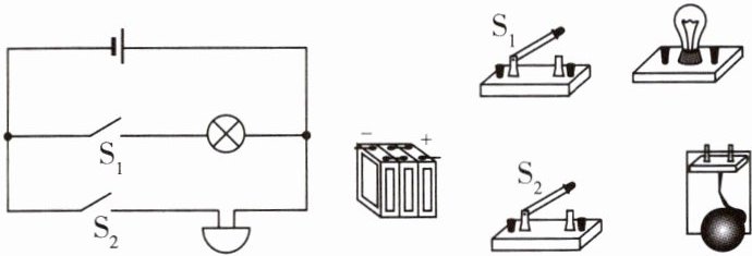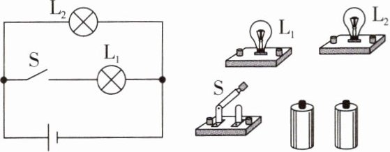 6. 按照电路图,分别将实物图中的各元件用笔画线表示导线连接起来。