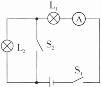 9. 如图所示,当开关$ S_1 $闭合,$ S_2 $断开时,电流表A的示数为0.24A,则通过灯$ L_2 $的电流是