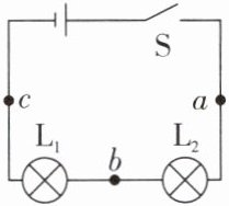 7. 在如图所示的电路中,将电流表分别接在电路中a、b、c三处,测出通过各处的电流为$ I_a $、$ I_b $、$ I_c $,它们之间的关系是