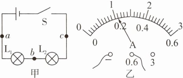11. 在“探究串联电路中各处电流的关系”的实验中,小明同学选用两个不同的小灯泡组成了如图甲所示的串联电路,然后用一个电流表分别接在a、b、c三处去测量电流。