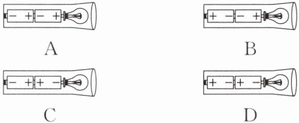3. 如图是装有两节干电池的手电筒的结构示意图,要使手电筒正常工作,两节干电池放置正确的是(