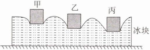 11. 在标准大气压下将质量相同的甲、乙、丙三块金属加热到相同的温度后,放到上表面平整的冰块上。经过一段时间后,冰块形状不再变化,状态如图所示。三块金属的比热容大小相比(