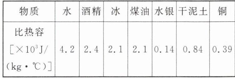 的特性。加热$1kg$水,使其温度上升$2^{\circ}C$,这个过程中水吸收热量为8.4×10³