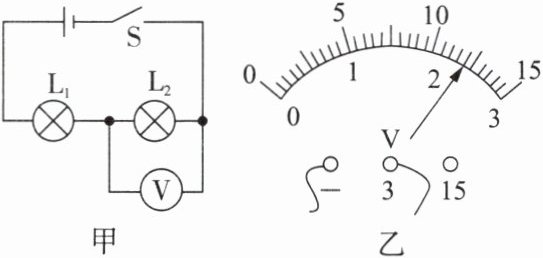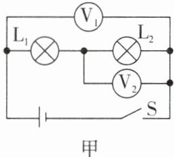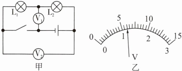 8. 如图甲所示的电路中,闭合开关后,两个电压表指针偏转情况均如图乙所示,则灯泡L₁和L₂两端的电压分别为(