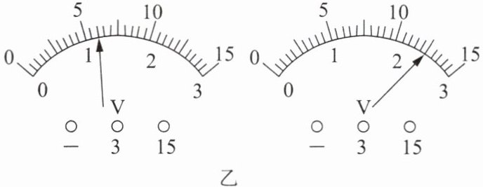 6. 如图甲所示的电路中,电压表所用的测量范围不明,当电路闭合后,V₁和V₂的示数分别如图乙所示。则V₁用的测量范围是