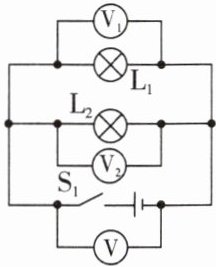 2. 教材改编 如图所示,闭合开关后灯泡L₁比L₂亮,电压表V₂示数为6V,下列说法中正确的是(