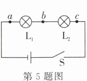 5. 如图所示,电源电压恒为3V,闭合开关后只有一盏灯亮,若用电压表先后测得ac和ab两端的电压均为3V,则故障可能是________;若用电压表先后测得________和________两端的电压均为3V,则故障可能是L₁短路。