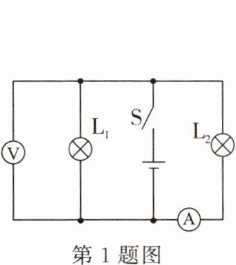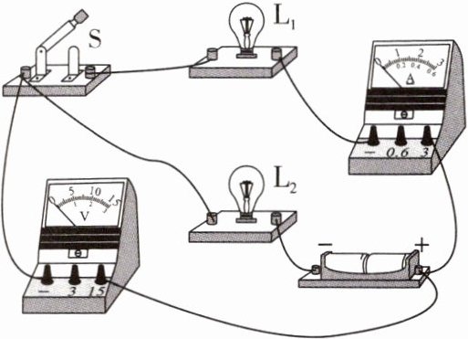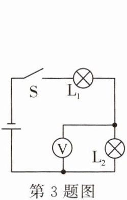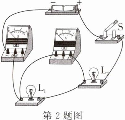 8. 如图是小华研究串联电路中电压特点的实物连接图。若电源电压为3V,当开关闭合时,电压表示数为2V,则灯L₂两端的电压为