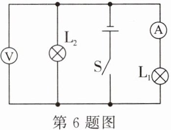 6. 如图所示,电源电压不变,闭合开关,两灯正常发光,电压表和电流表都有示数,一段时间之后,一个电表示数变小,另一个电表示数不变,则故障可能是