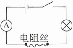 4. 如图所示电路中,开关闭合后,电流的示数是0.5 A,此时小灯泡恰好正常发光,当给电路中的电阻丝加热一段时间后,发现电流表的示数变小了,小灯泡发光很暗。根据这一现象,同学们大胆地猜想:电阻丝阻值大小的影响因素是(