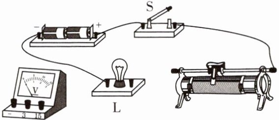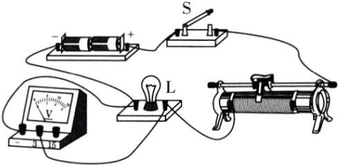 9. 在如图所示的电路中,有三根导线尚未连接,请完成电路图。要求:电压表测小灯泡两端电压;闭合开关,向左移动滑动变阻器的滑片时,小灯泡变亮。
