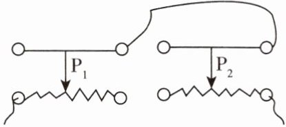 10. 如图所示,将两个滑动变阻器串联连入电路后,要使电路中的电流最小,则滑片 P₁和 P₂的位置应为(
