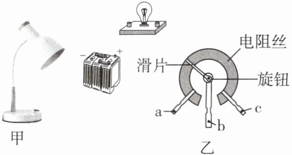 如图甲是生活中常见的亮度可调的台灯,电位器是调节其亮度的装置,顺时针旋动电位器旋钮时灯会变亮,图乙是模拟台灯工作的电路图,a、b、c为电位器的三个接线柱。请你用笔画线代替导线完成电路的连接。