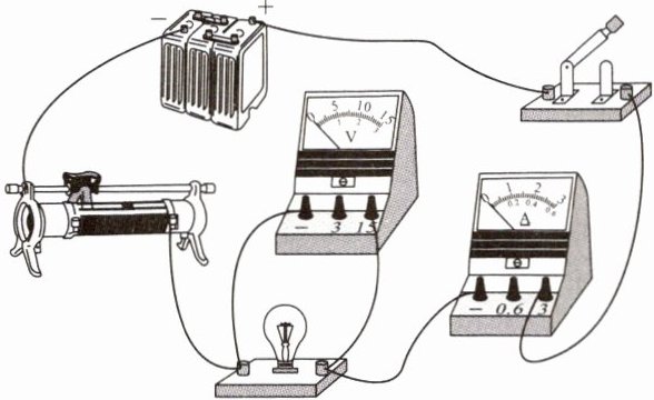 8. 如图是测定小灯泡电阻的实验电路,电路连接正确后闭合开关,发现灯不亮,电流表指针稍有偏转,电压表指针几乎不动,产生这一现象的原因可能是(