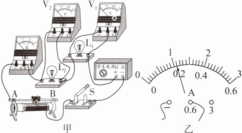 (选填“A”或“B”)端移动,此时电压表示数为2