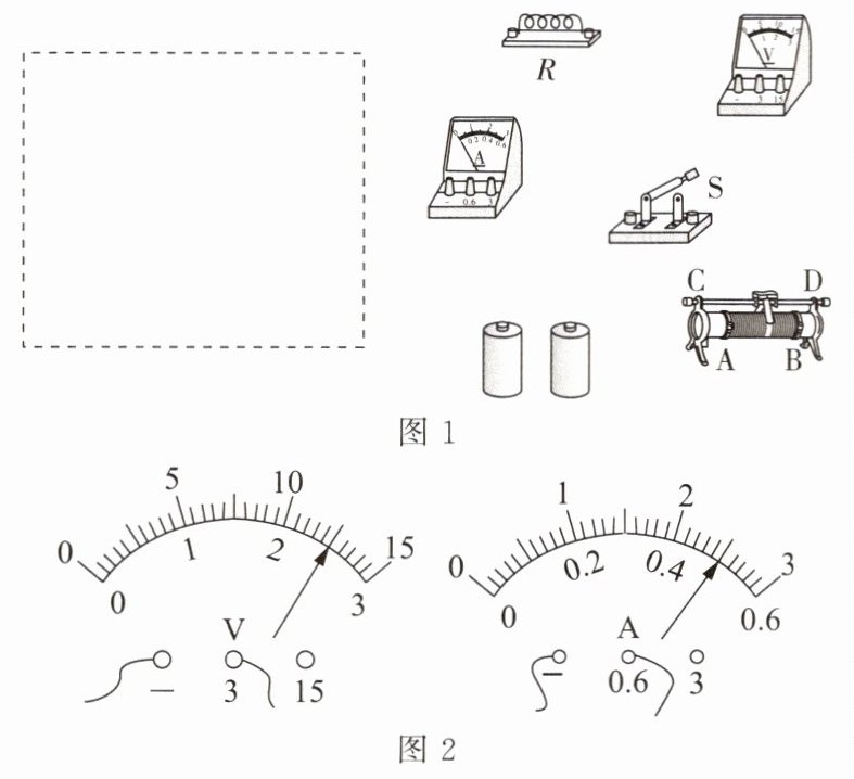 。(2)在虚线框内画出实验电路图,并把图1的实物图对应连接起来。(滑动变阻器接线柱A必须使用)