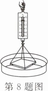 8. 日常生活 “破镜不能重圆”是因为将破镜合起来时,镜子破裂处的分子间______(选填“几乎没有相互作用力”“存在较大斥力”或“存在较大引力”)。如图所示,玻璃板的下表面接触水面,稍稍用力向上拉玻璃板,玻璃板与水面脱离的瞬间,发现拉力大于玻璃板的重力,说明分子间存在相互作用的______。