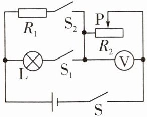 $\mathrm{V}$时,灯泡正常发光;② 保持滑片位置不动,闭合$S$、$S_{2}$,断开$S_{1}$,此时电压表示数为$4\mathrm{V}$;