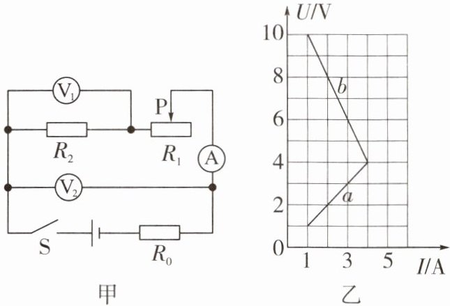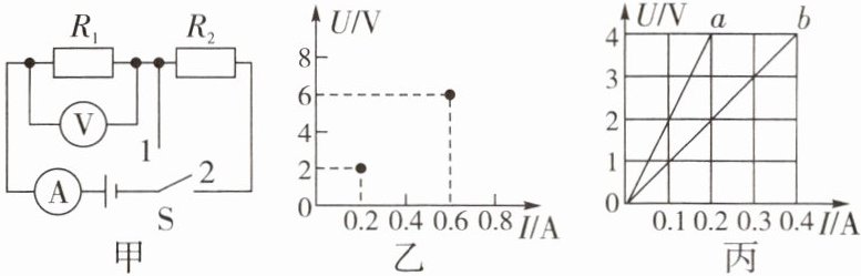 Ω ,电阻 $ R_2 $ 的 U-I 图像是丙图中的 a