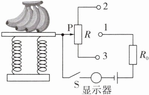 5. 如图是某水果店使用的电子秤工作原理简化图,滑片P可在竖直放置的电阻R上滑动,不放水果时,P处于R的最上端。当所称水果的质量增大时,由电表改装成的显示器示数也增大。下列说法不正确的是()