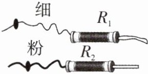 4. 如图是两个定值电阻R₁、R₂的内部结构图,R₁、R₂所用电阻丝(涂有绝缘漆)粗细均匀、材料相同,分别缠绕在相同的圆柱形绝缘棒上,圈数分别为43圈和33圈,R₁的电阻丝比R₂的电阻丝细。下列说法正确的是()