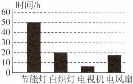 11. 数据模型分析 如图所示,这是四种家用电器各自消耗 1 度电可持续正常工作的时间柱状图,其中功率最大的电器是(