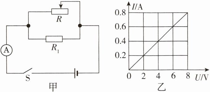 (1)由R₁的 I-U 图像可知$R₁=\frac{U}{I}=\frac{8 V}{0.8A}=10 Ω。$
