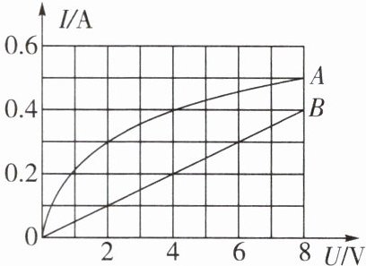4. 如图所示,$ A $、$ B $ 分别为额定电压为 $ 8 \, V $ 的小灯泡 $ L $ 和定值电阻 $ R $ 的电流随电压变化关系的图像。下列说法中不正确的是(