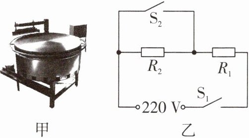 13. 如图甲所示的煎饼锅具有高温和低温两个挡位,图乙是其内部简化电路图。当处于高温挡时,煎饼锅的加热功率为938W,则R₁=