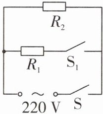 14. 一款电热水龙头的简化电路如图甲所示,表格是它铭牌上的参数。电源电压恒定不变,R₁和R₂为发热电阻,当开关S、S₁均闭合时,通电20s电热水龙头产生的热量是