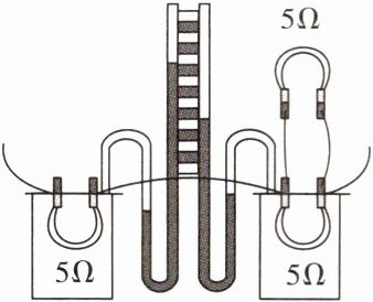 11. 如图是“探究通电导体产生的热量与______大小关系”的实验装置。通过左侧容器中电阻丝的电流为0.4A,在1min内电流通过右侧容器中电阻丝产生的热量为______J。