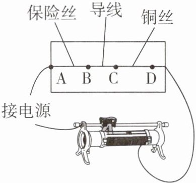 5. 教材改编如图所示,接线柱A、B之间和C、D之间分别连着保险丝和铜丝,且长度相等。接通电源后,通过保险丝的电流