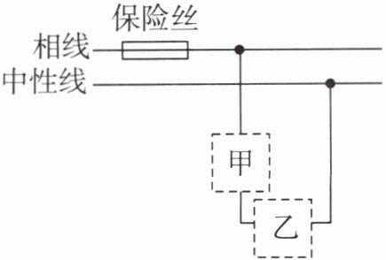 4. (多选)某家庭电路的部分电路如图,其中甲、乙两处分别制装用电器或开关。对此电路,下列说法中正确的是(