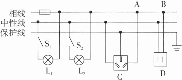 D.图中 AB 之间断开,插座 C 仍能正常使用