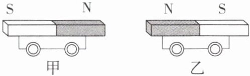 3. 如图所示,在两个靠得较近的小车上分别放一块磁体,同时松手后观察到的现象是(