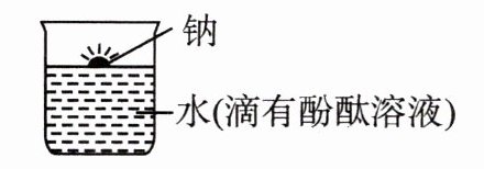充有钠蒸气的高压钠灯发出的黄光射程远,透雾能力强,常用于道路和广场的照明。钠的化学性质活泼,常温下可以与氧气、水反应。在实验室里,金属钠保存在煤油中。用镊子从煤油中取出金属钠,放在滤纸上,用小刀切下一小块,投入盛有水(滴有酚酞溶液)的烧杯中,发现钠块浮在水面上,很快熔化成银白色小球,四处游动,发出“嘶嘶”的响声,偶有火星出现,溶液变成红色。