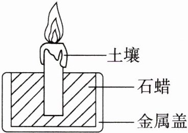 8. 某同学进行“泥土蜡烛”创新实验,如图所示。实验过程中加热金属盖,石蜡由固态变成液态,当石蜡沸腾后,用燃着的木条接近土壤上方,产生黄色火焰;实验结束后土壤未损耗,金属盖中石蜡减少。下列说法不正确的是(