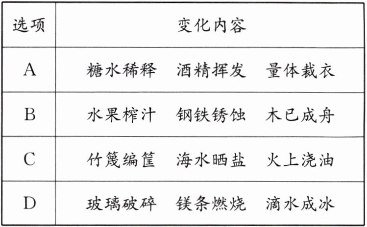 3. 物质的变化是化学研究的重要内容。下表中四组变化,全部为物理变化的是(