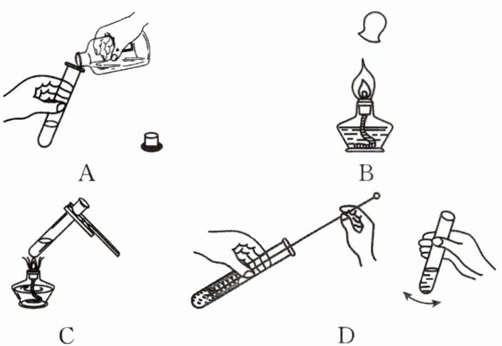 ,然后用酒精灯的外焰固定加热。(4) 如图 D 所示,试管内壁附有不易洗掉的物质时,清洗试管一般用试管刷刷洗,仪器洗干净的标志是________________________。