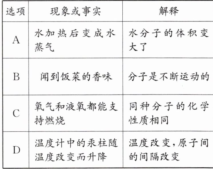 )A.用水银体温计测量体温——温度升高,分子的体积变大