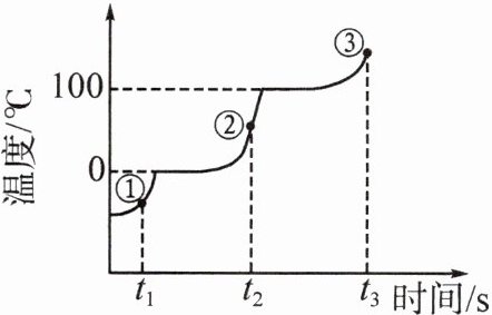 一定条件下在密闭容器里加热冰,温度和时间的关系如图所示,①②③表示水在不同时刻的存在状态。下列有关判断正确的是(
